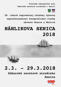 Vo výstavných priestoroch Záhorského osvetového strediska v Senici sa v piatok, 2. marca 2018 o 17,00 hod. uskutoční vernisáž 58. ročníka regionálnej súťažnej výstavy neprofesionálnej fotografickej tvorby okresov Senica a Skalica Náhlikova Senica 2018, ktorú pripravilo Záhorské osvetové stredisko Senica v zriaďovateľskej pôsobnosti Trnavského samosprávneho kraja.
